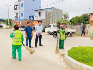 ភ្នំពេញ÷នារសៀលថ្ងៃអាទិត្យ ទី៣១ ខែសីហា ឆ្នាំ២០២៥ លោក ជិន ប៊ុនធឿន អភិបាលខណ្ឌឫស្សីកែវ បានដឹកនាំបញ្ជារកម្លាំងសណ្តាប់ធ្នាប់សហការជាមួយក្រុមហ៊ុន៨០០ស៊ុបពើ ចុះឈូសឆាយសម្អាត និងរៀបចំសណ្តាប់ធ្នាប់របៀបរៀបរយ នៅតាមបណ្ដោយផ្លូវបេតុងថ្មី (អតីតផ្លូវរថភ្លើងចាស់)។