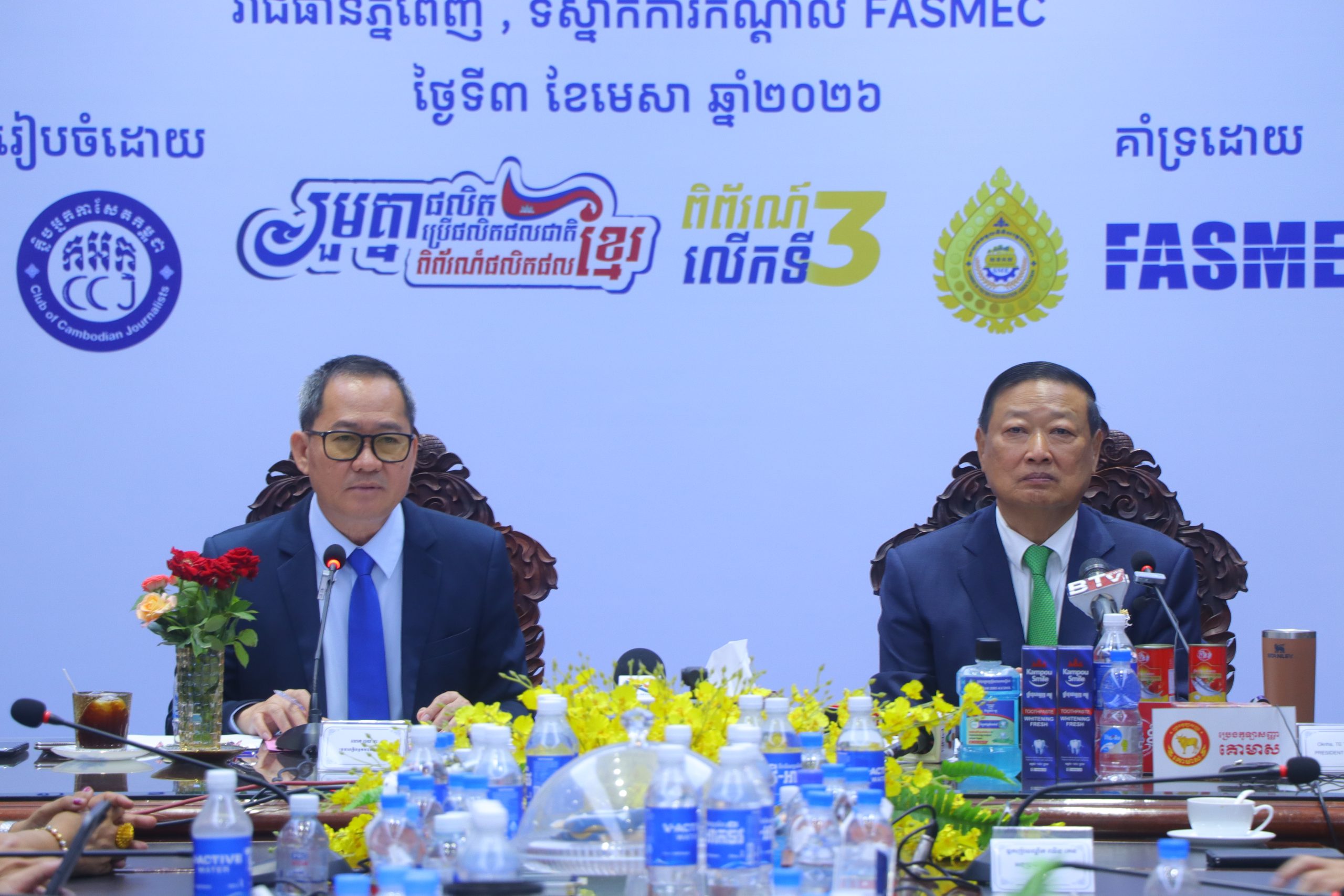 ក្នុងឱកាសពិធីបើកវេទិកា សារព័ត៌មានលើប្រធានបទ «រួមគ្នាផលិត រួមគ្នាប្រើផលិតផលជាតិ” ដោយមានការអញ្ជើញចូលរួមពីសំណាក់ លោក ពុយ គា ប្រធានក្លិបអ្នកកាសែតកម្ពុជា និង ឧញ៉ា តែ តាំងប៉ ប្រធានក្រុមប្រឹក្សាភិបាល សមាគមមូលនិធិសម្ដេចតេជោ និង FASMEC ព្រមទំាងម្ចាស់សហគ្រាស ធុនតូច និង មធ្យមនៅកម្ពុជា និងអ្នកសារព័ត៌មានពី៦០ អង្គភាពចំនួន ៨៥នាក់ចូលរួម ។