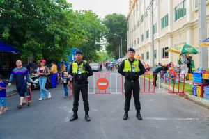នាថ្ងៃទី១៤ ខែមេសា ឆ្នាំ២០២៦ កម្លាំងកងរាជអាវុធហត្ថរាជធានីភ្នំពេញ ក្នុងទីបញ្ជាការ ក៏ដូចជានៅតាមបណ្ដាមូលដ្ឋានអាវុធហត្ថខណ្ឌទាំង១៤ បានចូលរួមជាមួយសមត្ថកិច្ចចម្រុះ ការពារសន្តិសុខ សុវត្ថិភាព រក្សាសណ្ដាប់ធ្នាប់ និងសង្គ្រោះបន្ទាន់ ជូនដល់ភ្ញៀវទេសចរណ៍ជាតិ-អន្តរជាតិ ដែលបានមកចូលរួមលេងកម្សាន្តក្នុងព្រឹត្តិការណ៍នគរសង្ក្រាន្ត នាឱកាសពិធីបុណ្យចូលឆ្នាំថ្មី ប្រពៃណីជាតិខ្មែរ នៅតាមបណ្តាទីតាំងនានាដែលបានរៀបចំពិធីកំសាន្តសប្បាយ ក្នុងភូមិសាស្ត្ររាជធានីភ្នំពេញ។