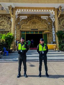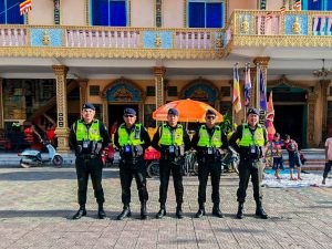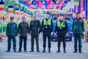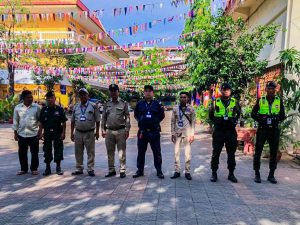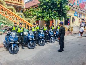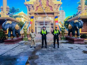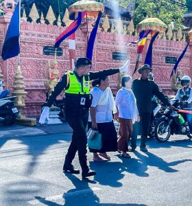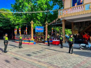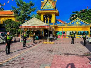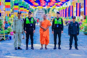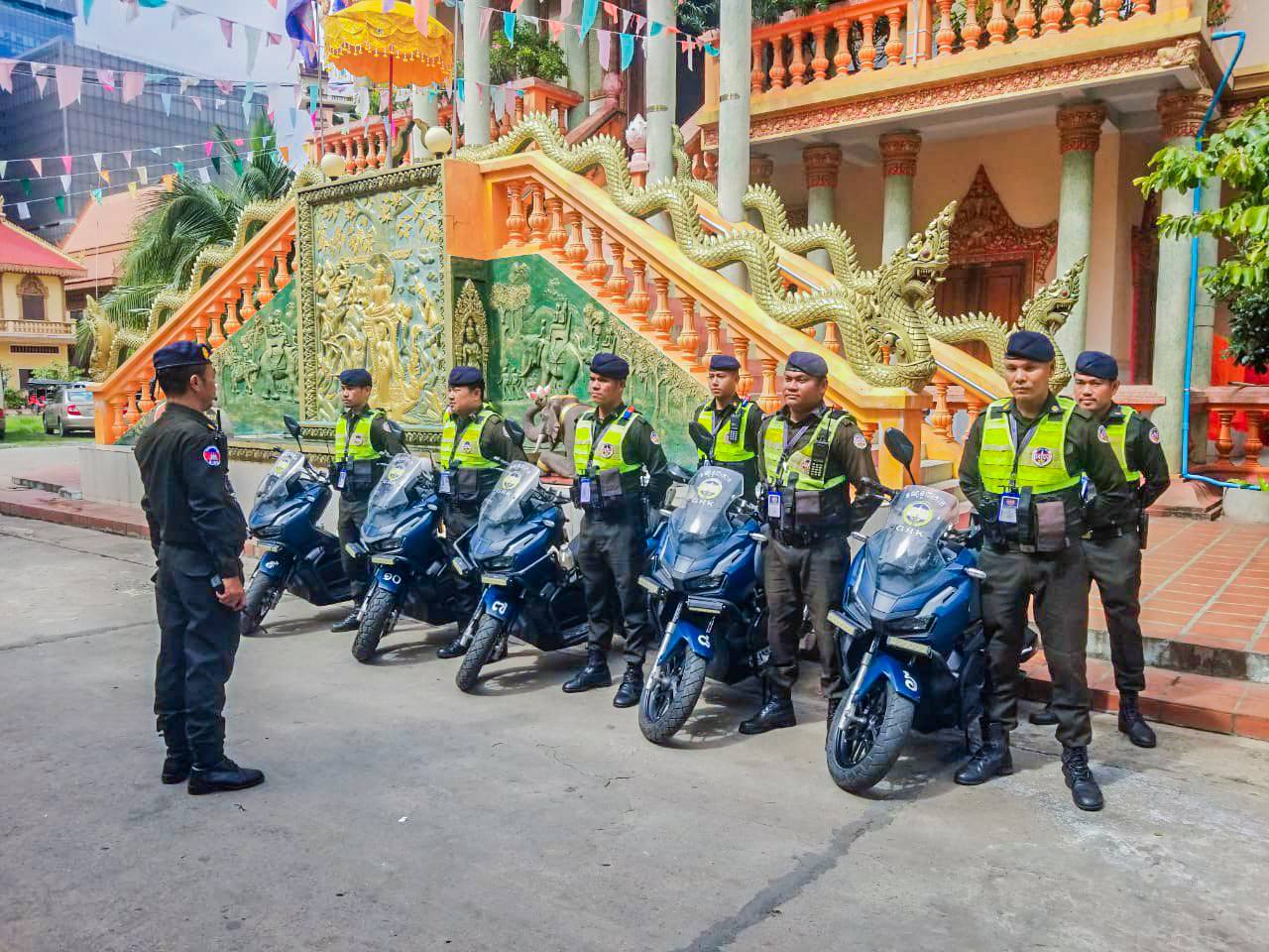 (ភ្នំពេញ)៖ កម្លាំងកងរាជអាវុធហត្ថរាជធានីភ្នំពេញ ចូលរួមការពារសន្តិសុខ សុវត្ថិភាព រក្សាសណ្តាប់ធ្នាប់ ជូនបងប្អូនប្រជាពលរដ្ឋនៅតាមបណ្ដាទីវត្តអារាម ក្នុងភូមិសាស្ត្ររាជធានីភ្នំពេញ ក្នុងឱកាសពិធីបុណ្យកាន់បិណ្ឌ និងភ្ជុំបិណ្ឌឆ្នាំ២០២៥នេះ ដែលប្រព្រឹត្តទៅចាប់ពីថ្ងៃ១រោច ដល់ថ្ងៃ ១៥រោច ខែភទ្របទ ត្រូវនឹងថ្ងៃទី៨ ដល់ថ្ងៃទី២៣ ខែកញ្ញា ឆ្នាំ២០២៥។